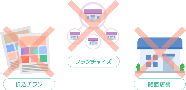 折り込みチラシ費用・フランチャイズ加入費用・家賃の高い路面店舗なし。