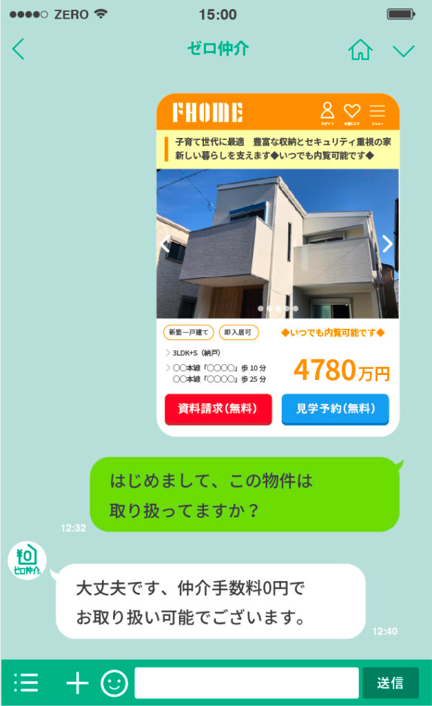 問い合わせは非常にシンプル。物件情報をLINEで送るだけ。